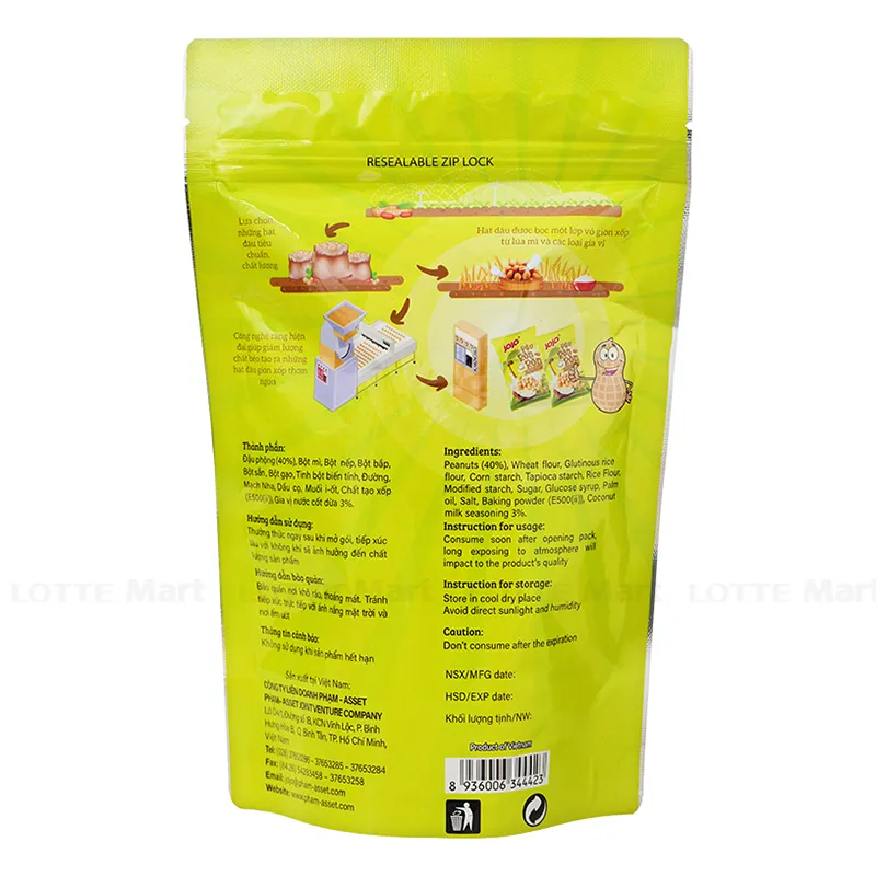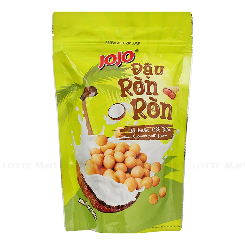 - Đậu Phộng Ròn Ròn Jojo Vị Nước Cốt Dừa là sản phẩm hạt khô được tẩm ướp các gia vị cốt dừa thơm thơm, béo ngậy hấp dẫn. Hạt khô Jojo được yêu thích bởi độ giòn, thơm, từ nguyên liệu chất lượng, đảm bảo an toàn cho sức khỏe người tiêu dùng.