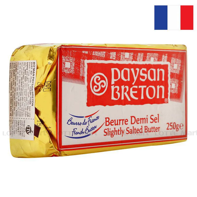 Bơ mặn PAYSAN BRETON gói 250gr có hương thơm tự nhiên, chứa 2,5% muối, hàm lượng dinh dưỡng cao, vị béo ngậy, giàu vitamin A, D, E cần thiết cho sự phát triển của cơ thể, nhất là đối với trẻ em.