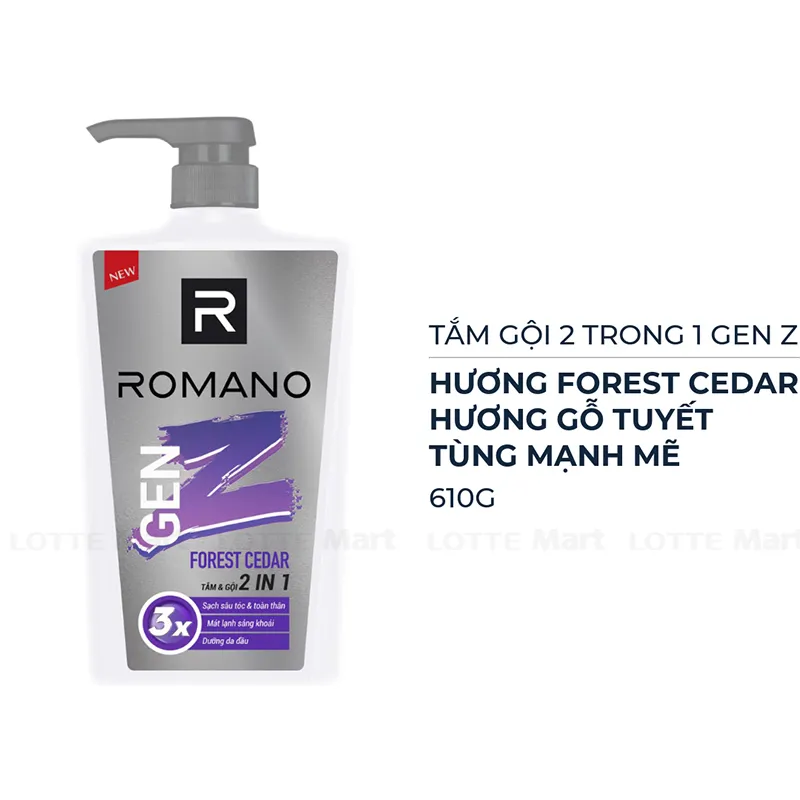 Dầu Tắm Gội 2 Trong 1 Romano Gen Z Hương Forest Cedar 610g