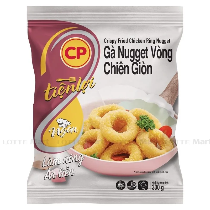 Là loại thực phẩm làm sẵn giàu dinh dưỡng, thơm ngon và kích thích vị giác đến từ thương hiệu thực phẩm chế biến C.P quen thuộc. Gà nugget vòng chiên giòn C.P gói 300g được làm từ phần gà phi lê tạo thành vòng tròn, được tẩm gia vị và phủ lớp bột chiên xù, thích hợp ăn vặt hoặc ăn cùng cơm trắng.