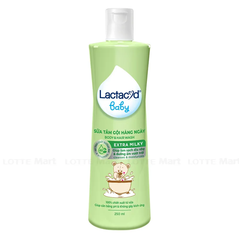 Sữa tắm trẻ em Lactacyd chứa thành phần tự nhiên Lactic Acid & Lactoserum chiết xuất từ sữa giúp duy trì lớp màng bảo vệ tự nhiên trên da, bảo vệ da, đặc biệt là làn da em bé khỏi các kích ứng. Đồng thời với công thức giàu vitamin và khoáng chất giúp nuôi dưỡng tận sâu bên trong giúp làn da và tóc luôn mềm mịn. Lactacyd Milky được thử nghiệm không gây kích ứng và an toàn cho cả làn da nhạy cảm.