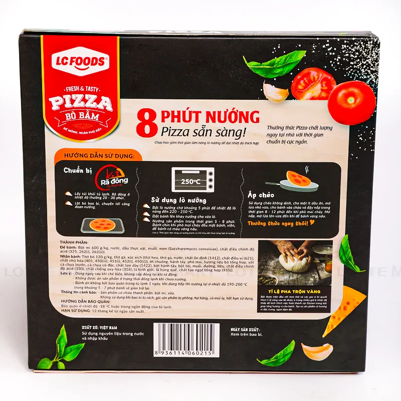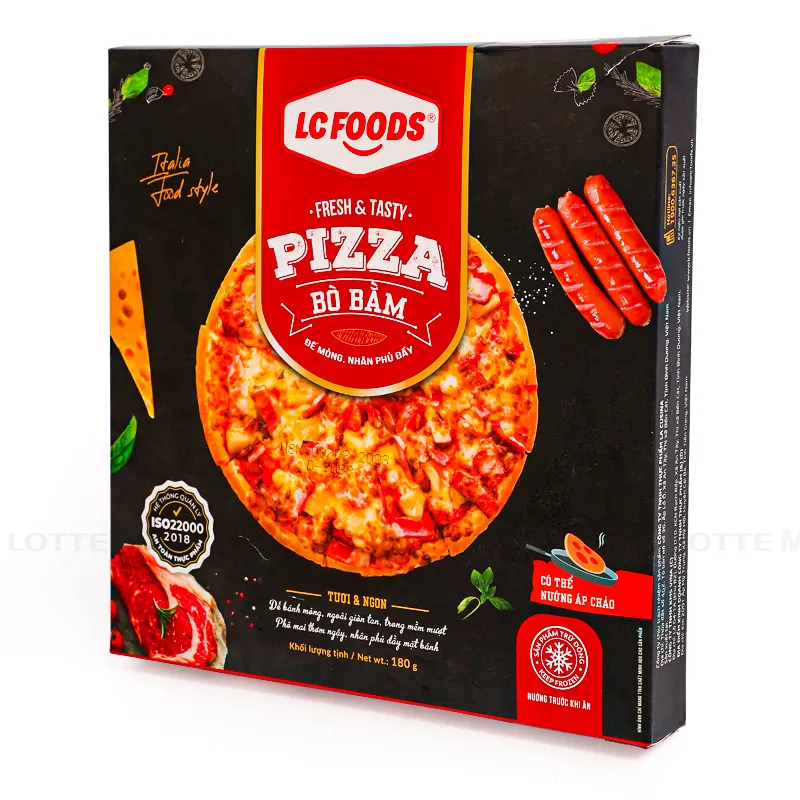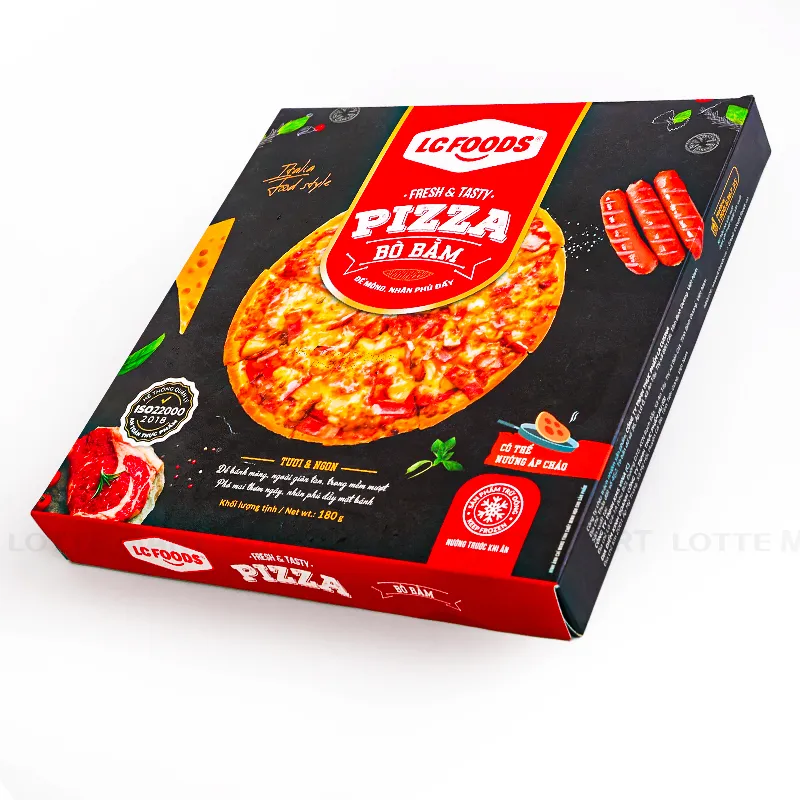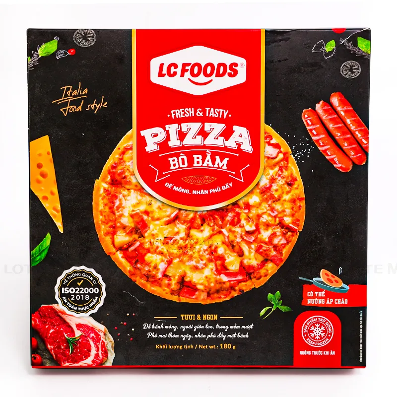 - Những hộp Pizza bò bằm LC Foods là sự lựa chọn tuyệt vời khi bạn không có nhiều thời gian cho việc nấu nướng. Sản phẩm được đóng gói nhỏ gọn, rất tiện lợi cho việc sử dụng và bảo quản tại gia đình.