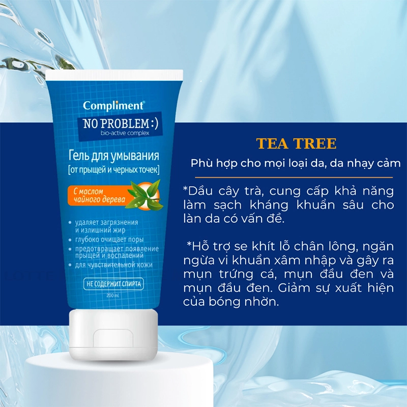 Gel Rửa Mặt Compliment No Problem Tinh Chất Tràm Trà Tea Tree là sản phẩm thuộc thương hiệu Compliment của Tập đoàn TIMEX - một trong những doanh nghiệp sản xuất mỹ phẩm lớn và nổi tiếng nhất nước Nga được thành lập từ năm 1994.