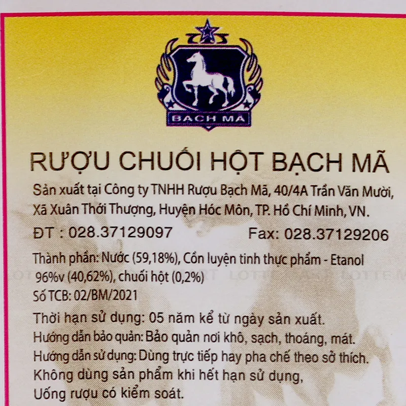Rượu Chuối Hột Bạch Mã 39% ABV Chai 500ml