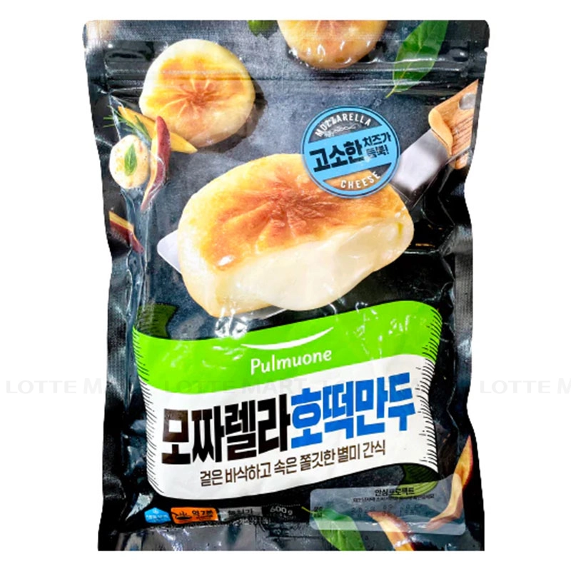 - Bánh Hotteok Nhân Phô Mai Mozzarella Pulmuone với vỏ bánh được làm từ tinh bột, bột gạo và bột mì tạo vỏ mỏng giòn ấn tượng, bên trong thơm ngon vị phô mai.