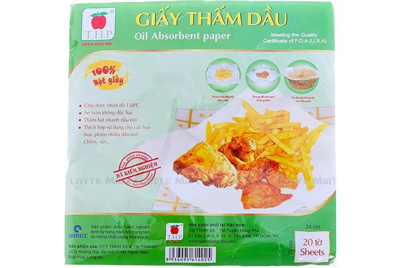 Giấy Thấm Dầu Tuyền Hưng Phú 20 Tờ 24 x 25cm là vật dụng không thể thiếu trong gian bếp, màng bọc thực phẩm, Giấy Thấm Dầu Tuyền Hưng Phú thương hiệu nổi tiếng nổi bật tại Việt Nam. Giấy thấm dầu Tuyền Hưng Phú giúp bọc sản phẩm thấm dầu mà không bị khô, giữ nguyên độ thơm ngon khó cưỡng.