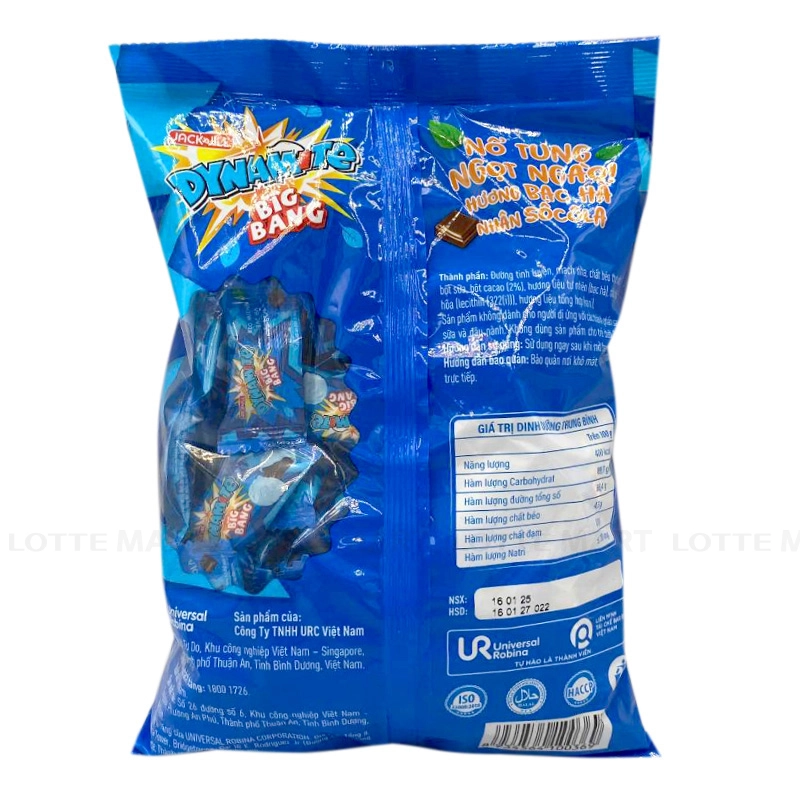 Kẹo cứng bạc hà nhân sô cô la Dynamite Jack'n Jill có mùi vị bạc hà the mát bên ngoài, bên trong có lớp nhân sô cô la thơm lừng, tan chảy trong miệng, hòa quyện tạo nên một cảm giác khó quên trong lần thử đầu tiên.