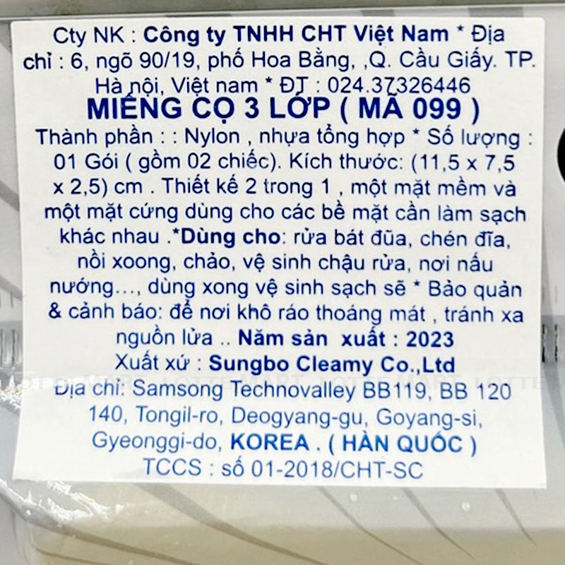 Miếng Cọ Rửa Đa Năng 3 Lớp Kháng Khuẩn Sungbo Cleamy 099