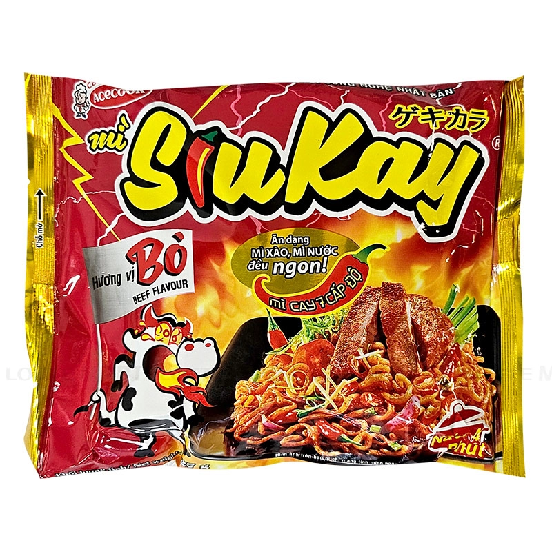 Khi nhắc đến thực phẩm ăn đóng gói, có lẽ các tín đồ yêu thích món mì gói ăn liền sẽ nhớ ngay đến Mì Siu Kay Vị Bò của thương hiệu Acecook. Loại mì ăn liền này đã được ra mắt tại Việt Nam vào những năm gần đây và nhanh chóng trở thành hiện tượng "làm mưa làm gió" trên thị trường.