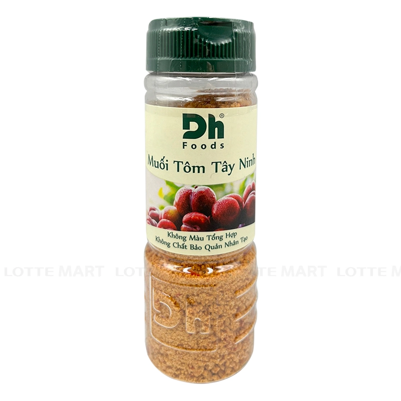 Muối Tôm Dh Foods có thành phần chính là sự kết hợp giữa tôm khô, ớt, tỏi và muối, là một loại gia vị không thể thiếu trong các bữa ăn của gia đình và dùng để chế biến những món nước chấm ăn cùng các loại trái cây tươi hoặc thực phẩm luộc, hấp. Có thành phần được chọn lọc kỹ lưỡng như muối, ớt, tỏi, tôm khô...an toàn cho sức khỏe người sử dụng. Muối tôm là một thức chấm thú vị cho trái cây tươi hoặc rau củ luộc/hấp….hay dùng thay nước mắm khi ăn một số món cuốn. Bạn có thể dùng muối tôm để ướp thịt gà hay hải sản để nướng (tương tự như món nướng ướp muối ớt, nhưng thơm ngon và đặc trưng hơn), ướp thịt cá để chiên/kho, thậm chí dùng khi chiên cơm và nêm canh cũng rất ngon. Muối tôm cũng chính là gia vị làm nên món bánh tráng trộn của tuổi học trò. Lọ đựng được sản xuất từ nhựa Pet nguyên sinh – đảm bảo an toàn sức khỏe cho người sử dụng. Nắp lọ rất tiện dụng, lọ đựng sản phẩm được đóng kín bằng ‘màng Seal ghép lót’ – đảm bảo tuyệt đối chất lượng sản phẩm – không hút ẩm – chống vón cục. Thành phần: Muối Iod (Muối, Kali Iodat) (40%), Bột tôm (15%), Ớt, Tỏi, Chất điều vị: Mononatri Glutamat (E621), Đường. Hướng dẫn sử dụng: Chấm hoa quả, rau củ tươi, rau củ luộc, hấp. Nêm các món xào, kho, canh. Hướng dẫn bảo quản: Để nơi khô ráo, thoáng mát. Tránh ánh nắng trực tiếp.