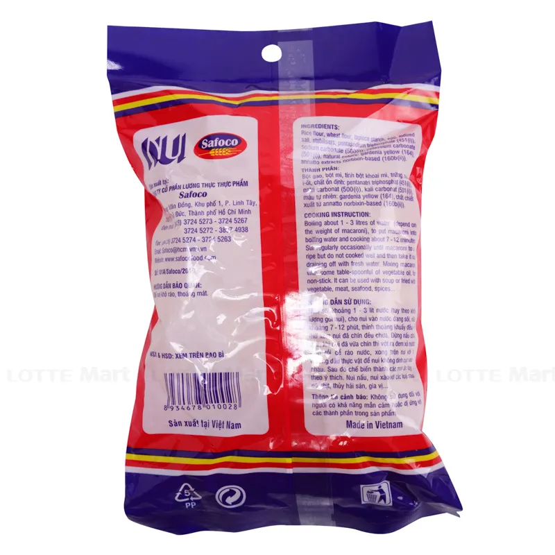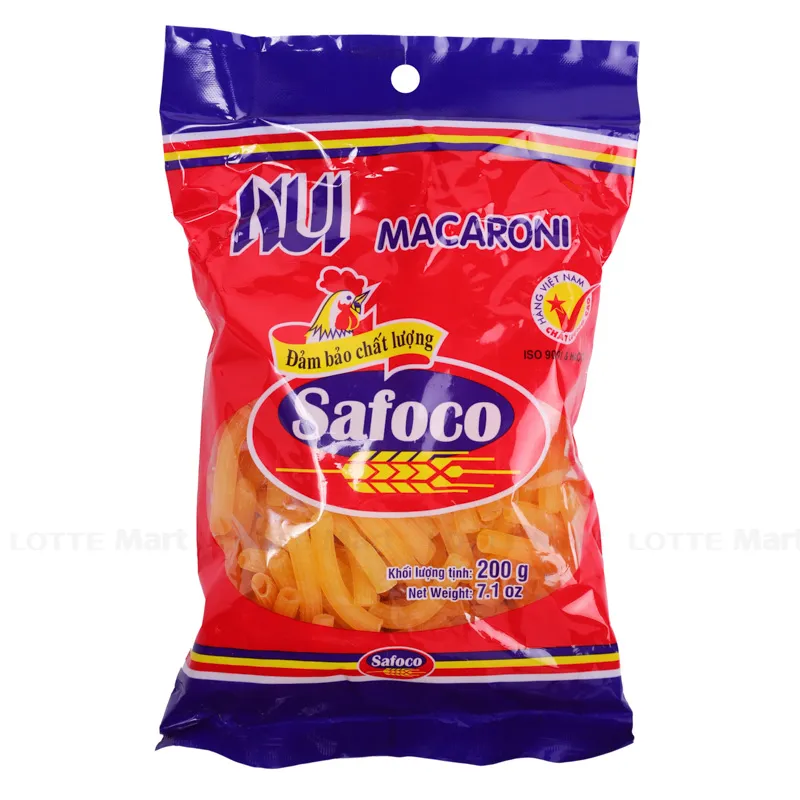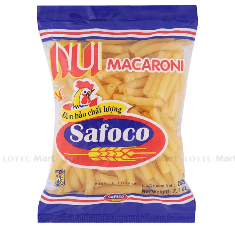 Nui Ống Safoco Gói 200g là sản phẩm chế biến sẵn được làm từ nguyên liệu chính là gạo và bột mì.