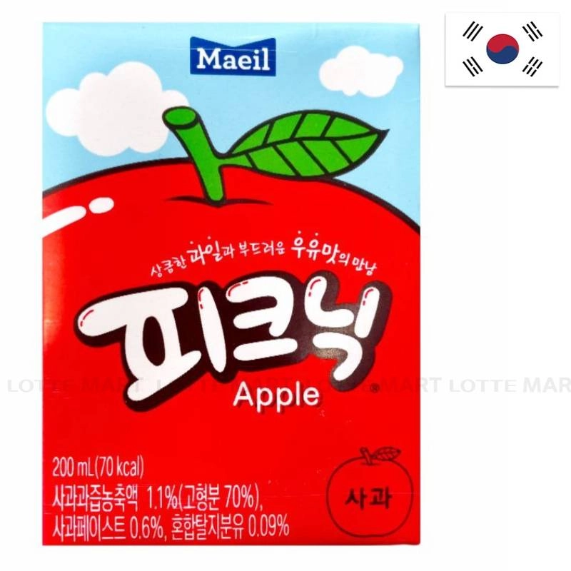 - Nước Ép Maeil Picnic Vị Táo với sự hòa quyện giữa nước ép táo cô đặc được thu thập từ nguồn táo ở Chile và hỗn hợp bột sữa gầy từ Hà Lan mang đến một thức uống vừa giải khát, vừa chứa các chất dinh dưỡng và lành mạnh.