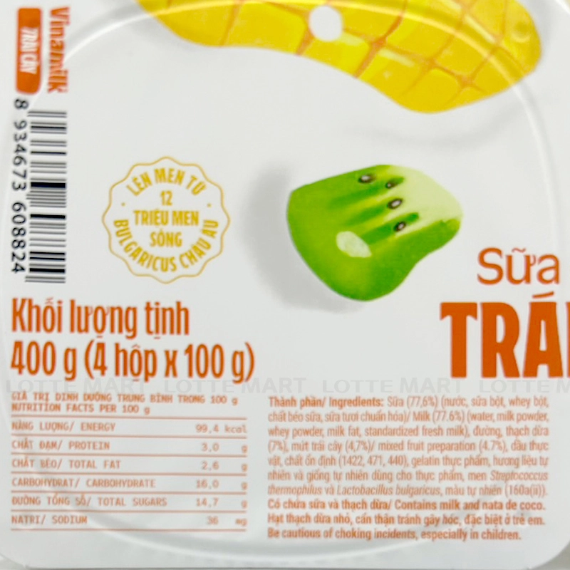- Sữa chua ăn Vinamilk trái cây được lên men theo công thức đặc biệt, mọi khâu từ tuyển chọn nguyên liệu tới chế biến, đóng hộp đều diễn ra khép kín dưới sự giám sát và kiểm tra nghiêm ngặt của các chuyên gia về công nghệ thực phẩm.