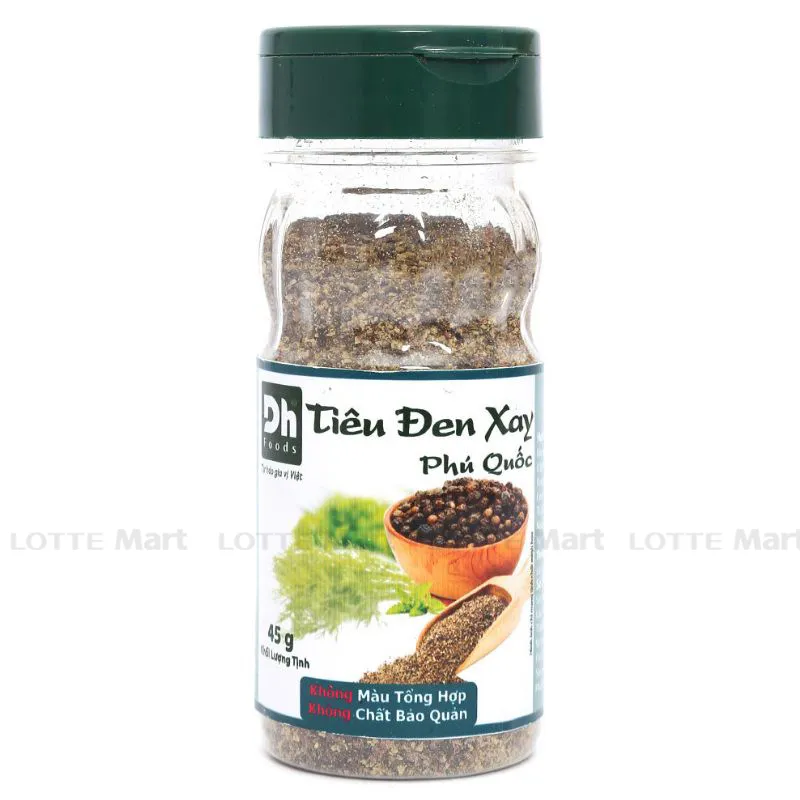 Tiêu Đen Xay Xay Phú Quốc DH Food 45G dùng để ướp thực phẩm và nêm các món xào, kho, canh. Ngoài ra tiêu còn rất hữu dụng trong việc trị các chứng bệnh: chứng lạnh bụng, nôn ói, chứng tê thấp, đau răng, sâu răng, chứng sốt rét.