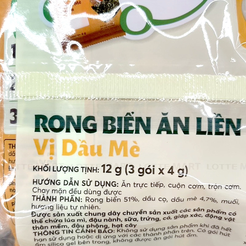 • Vị dầu mè nhẹ nhàng kết hợp với rong biển tự nhiên, tạo nên sự hòa quyện hoàn hảo cho bữa ăn.