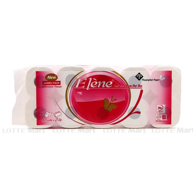 - Giấy Vệ Sinh Elène Hồng 3 Lớp được làm từ 100% bột giấy nguyên chất, là sản phẩm giấy vệ sinh chất lượng cao được sản xuất trên dây chuyền khép kín với công nghệ mới đảm bảo an toàn vệ sinh.