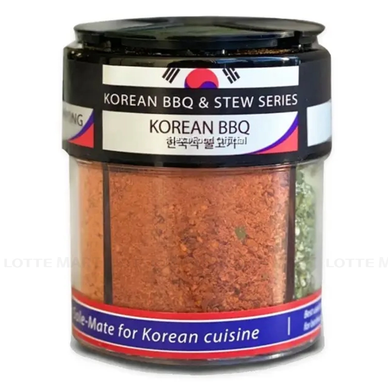 - BBQ Hàn Quốc - Korean BBQ: ớt, chất điều vị (INS 968), muối, tỏi, ớt cựa gà xông khói, hành tây, chất chống đông vón (INS 551), thìa là Ai Cập, mù tạt, tiêu.