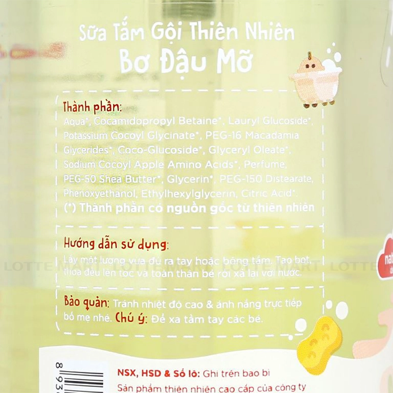 - Chứa chiết xuất 97% thành phần từ thiên nhiên như hạt đậu mỡ, hạt macca, táo giúp nhẹ nhàng làm sạch làm da nhạy cảm cũng như mái tóc mỏng manh của bé.