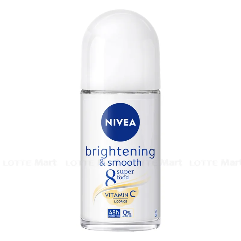 Lăn Khử Mùi Nivea Trắng Da 50ML công thức chứa 10 loại vitamin và dưỡng chất* giúp dưỡng vùng da dưới cánh tay trắng mịn dù dùng nhíp thường xuyên.