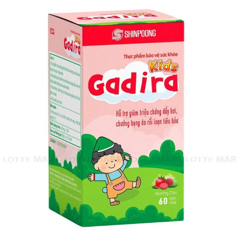 Thực Phẩm Bảo Vệ Sức Khỏe Shinpoong Gadira Kids Hương Dâu Hỗ Trợ Giảm Triệu Chứng Đầy Hơi Cho Trẻ Em Hộp 60 Viên