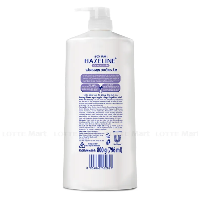 Sữa Tắm Hazeline Chiết Xuất Yến Mạch Dâu Tằm Sáng Mịn Dưỡng Ẩm Chai 800G