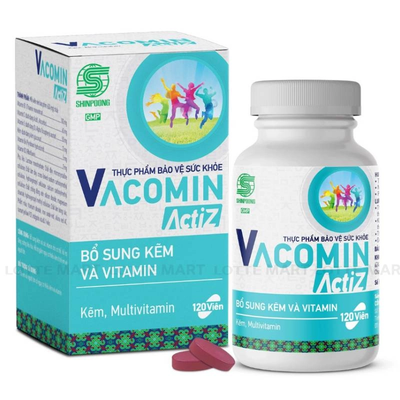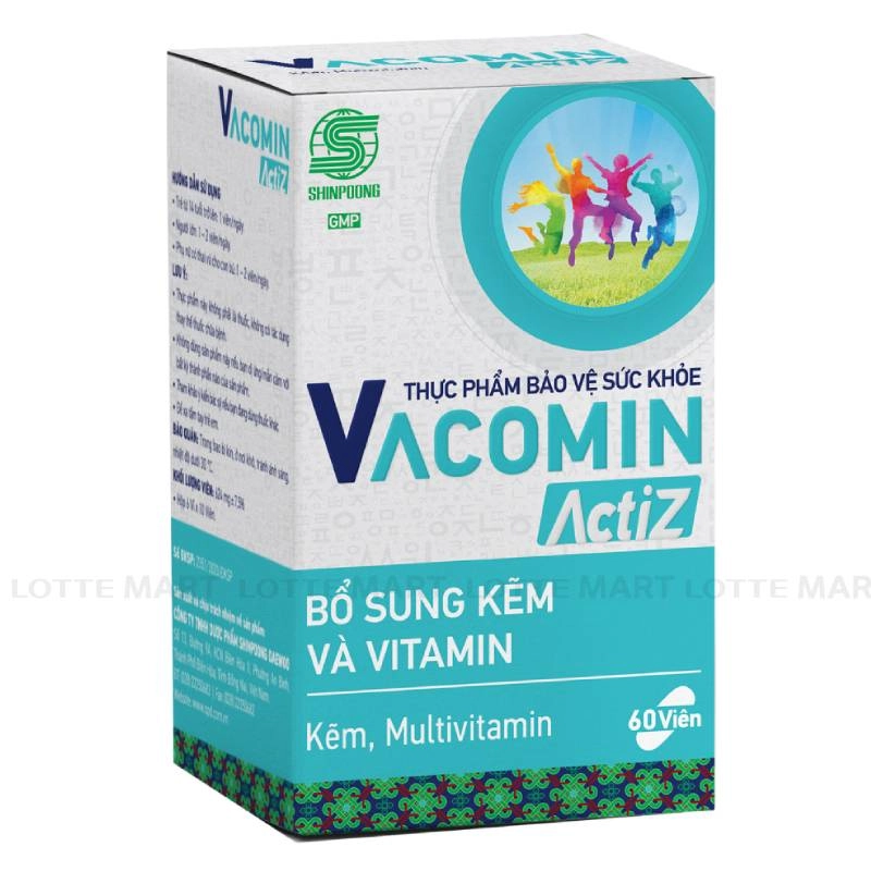 - Thực Phẩm Bảo Vệ Sức Khỏe Shinpoong Vacomin Actiz Bổ Sung Kẽm Và Vitamin là sản phẩm của công ty dược phẩm có bề dày lịch sử lâu đời tại Hàn Quốc - Shinpoong Pharma. Sản phẩm giúp bổ sung kẽm và các vitamin cần thiết cho cơ thể.