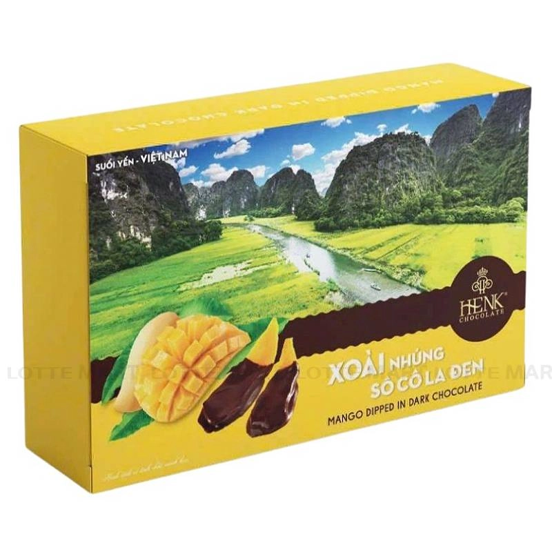 Xoài Nhúng Socola Đen Henk là sự kết hợp tinh tế giữa vị đắng nhẹ, đậm đà của lớp socola đen bao bọc bên ngoài cùng phần xoài thơm ngon.