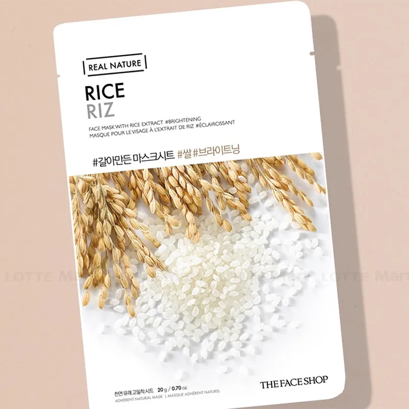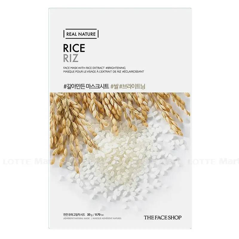 Mặt Nạ Làm Sáng Da Chiết Xuất Gạo Real Nature Rice 20g được chiết xuất từ gạo, giàu vitamin B1, mỗi gói của mặt nạ chứa tới 1,000mg bột gạo nguyên chất. Real Nature Rice Riz TheFaceShop giúp dễ dàng làm sạch, tẩy tế bào chết trên da, cải thiện là da tối, đen, sạm, sắc tố không đồng đều, cho da sáng đẹp hơn.
