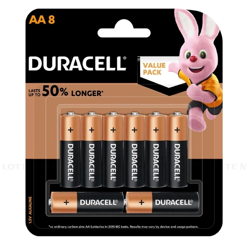 - Pin Kiềm Duracell AA Vỉ 8 Viên thích hợp sử dụng cho các thiết bị từ cơ bản như đèn pin, điều khiển tivi, điều khiển máy lạnh, quạt điện cho tới các thiết bị số phức tạp và mắc tiền như máy ảnh, máy chơi game, đồ chơi,…