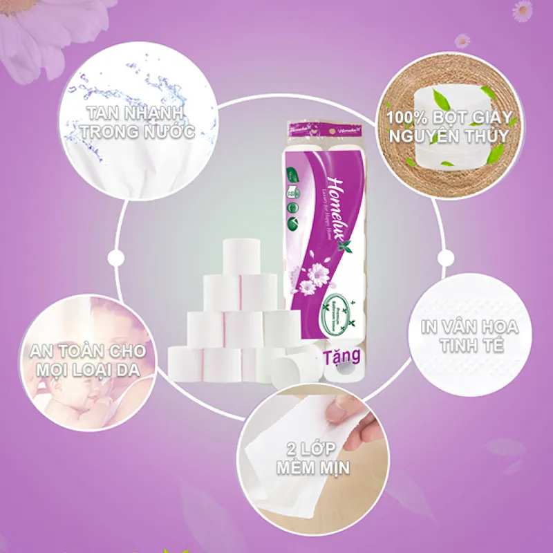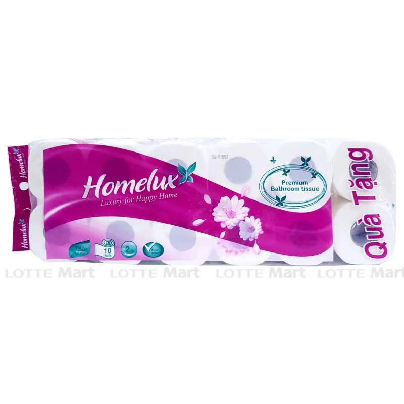 - Giấy Vệ Sinh Cao Cấp Có Lõi Homelux 2 Lớp Lốc 10 Cuộn Tặng Kèm 2 Cuộn là sản phẩm giấy cao cấp đến từ thương hiệu Homelux. Giấy vệ sinh Homelux mềm, dai, tan nhanh trong nước.