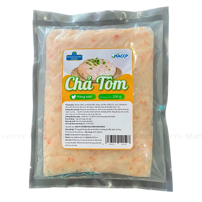 - Chả tôm Phạm Nghĩa 200g là loại chả tôm ngon và chất lượng, chả tôm phạm nghĩa là sự kết hợp của thịt tôm và cá thác lác giúp chả trở nên dai, hương vị ngon ngọt thanh mát, lại đầy dưỡng chất.