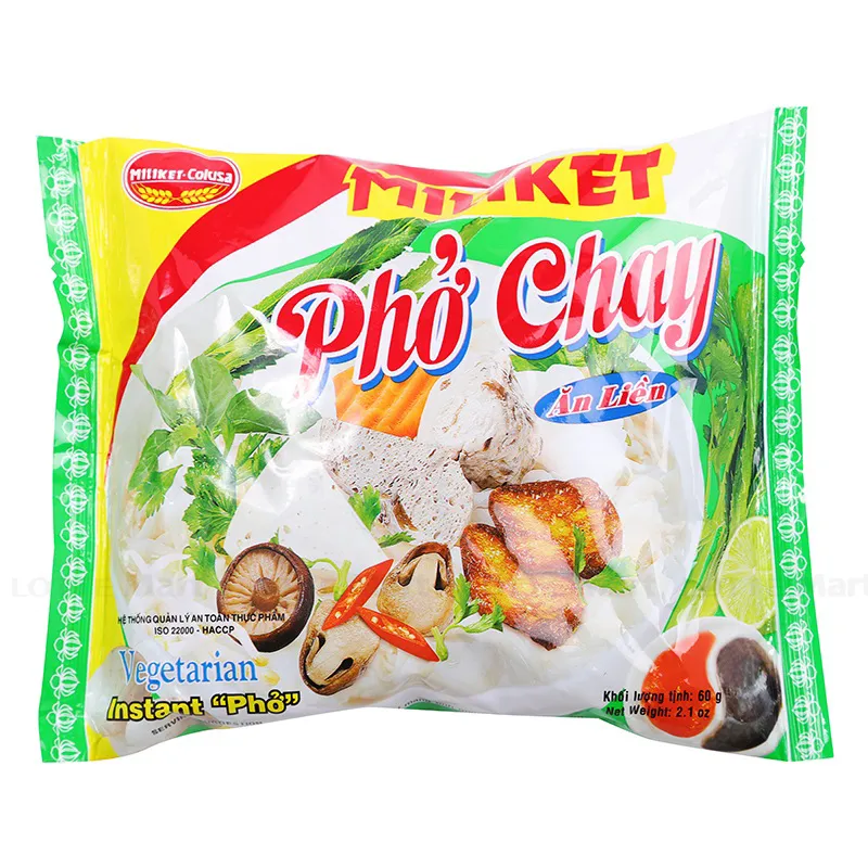 Phở Chay MILIKET 60G là sản phẩm ăn liền chất lượng cao được làm từ gạo, muối, đường, dầu cọ tinh luyện và gia vị được chọn lọc cẩn thận và sản xuất trên dây chuyền hiện đại khép kín, không sử dụng phụ gia độc hại nên tuyệt đối an toàn với sức khỏe người tiêu dùng.