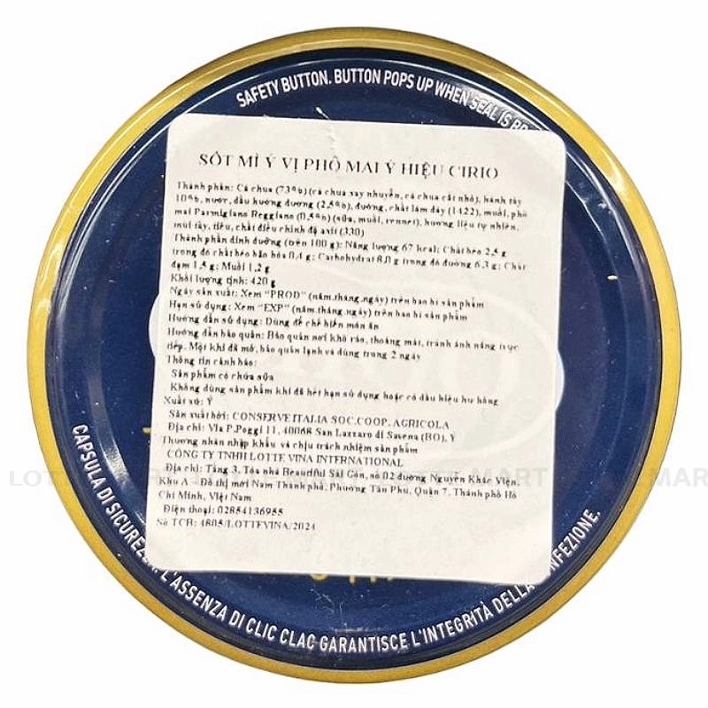 - Sốt Mì Ý Cirio Vị Phô Mai là một sản phẩm lý tưởng để nâng tầm món mì ý của bạn. Với hương vị phô mai thơm ngon và độ sệt vừa phải, sản phẩm mang lại trải nghiệm ẩm thực tuyệt vời cho cả gia đình.