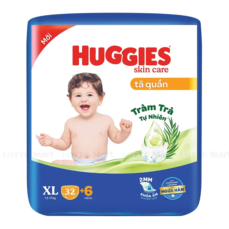 Đặc điểm nổi bật: Tã quần Huggies size XL 32 miếng cải tiến mới với công nghệ lưng thun đệm mây, chống hằn da. Khả năng thoáng khí được chứng minh lâm sàng giúp ngăn ngừa hăm tã, giữ mông bé luôn khô thoáng. Nhờ chất liệu mềm mại, bỉm Huggies giúp nâng niu làn da nhạy cảm của bé.