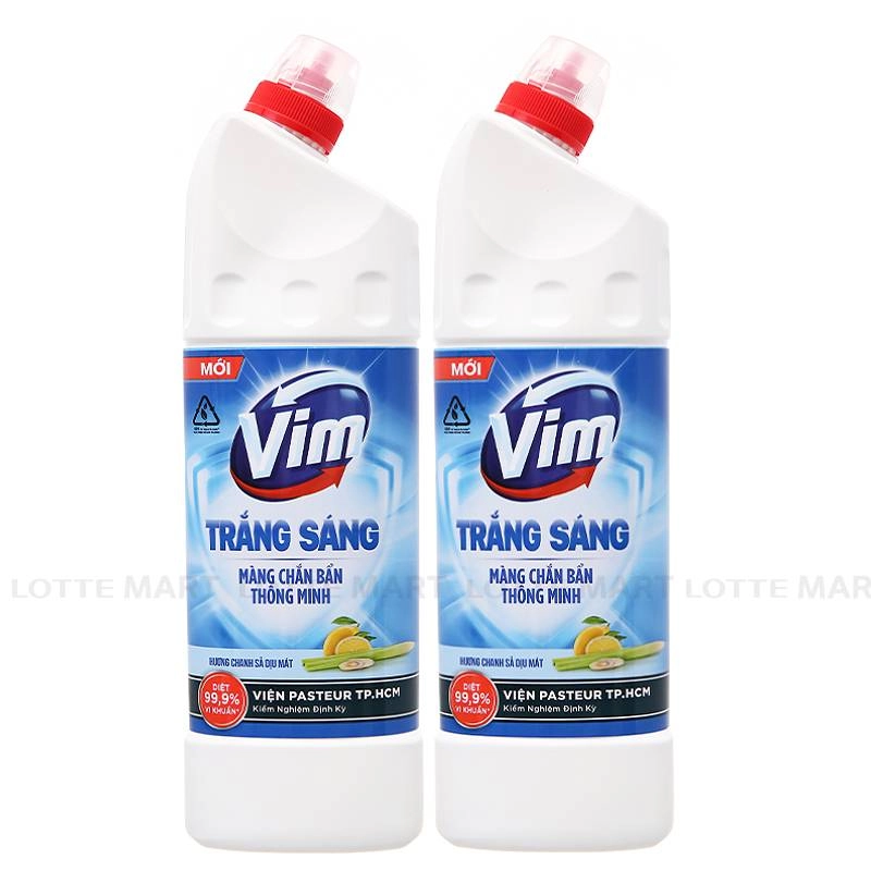 - Tẩy Rửa Bồn Cầu Vim Chanh Sả giúp hấp thụ vết bẩn, diệt khuẩn tới 99.9% vi khuẩn gây bệnh, đánh bay cặn bám, ố vàng, trả lại vẻ sáng bóng cho bồn cầu và nhà tắm.