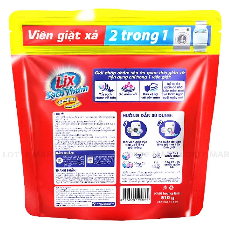 - Viên Giặt Xả Lix Hương Nước Hoa là giải pháp tiện lợi và hiệu quả cho việc giặt giũ, mang đến cho bạn quần áo sạch sẽ, mềm mại và thơm ngát. Với thiết kế dạng viên tiện dụng, sản phẩm giúp tiết kiệm thời gian và công sức trong mỗi lần giặt.