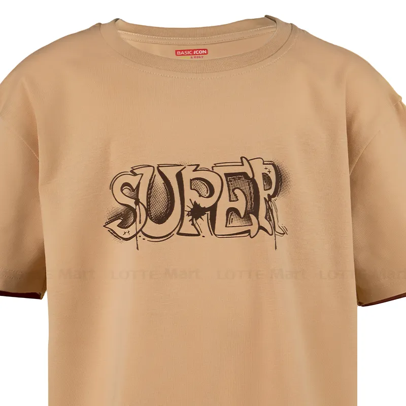 Áo Thun Bé Trai Tay Ngắn In Hình 2 Mặt Màu Be Size 11-14