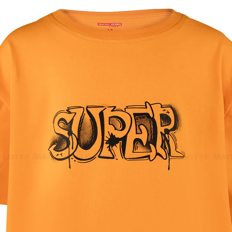 Áo Thun Bé Trai Tay Ngắn In Hình 2 Mặt Màu Cam Size 11-14