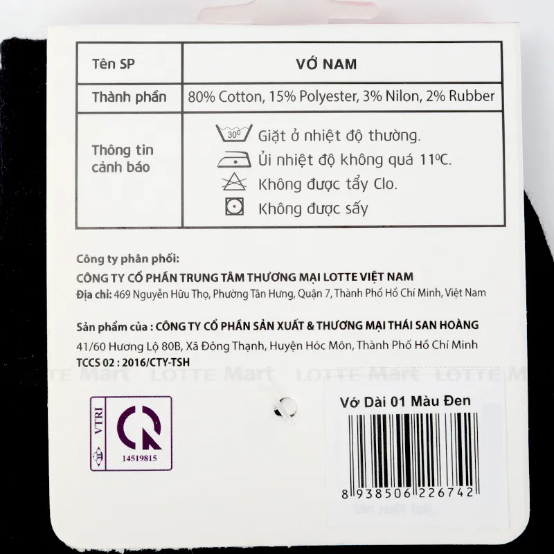 - Chất liệu: 80% Cotton, 15% polyester, 3% nilon, 2% rubber.