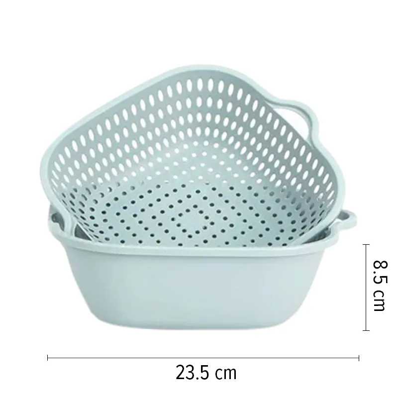 Chốt gài giữa thau rổ dễ dàng xếp chồng tiết kiệm không gian bếp. Bạn có thể đậy úp ngược phần rổ lên thau như một chiếc nắp đậy để ngăn ngừa côn trùng bu đậu, đảm bảo vệ sinh khi chế biến.