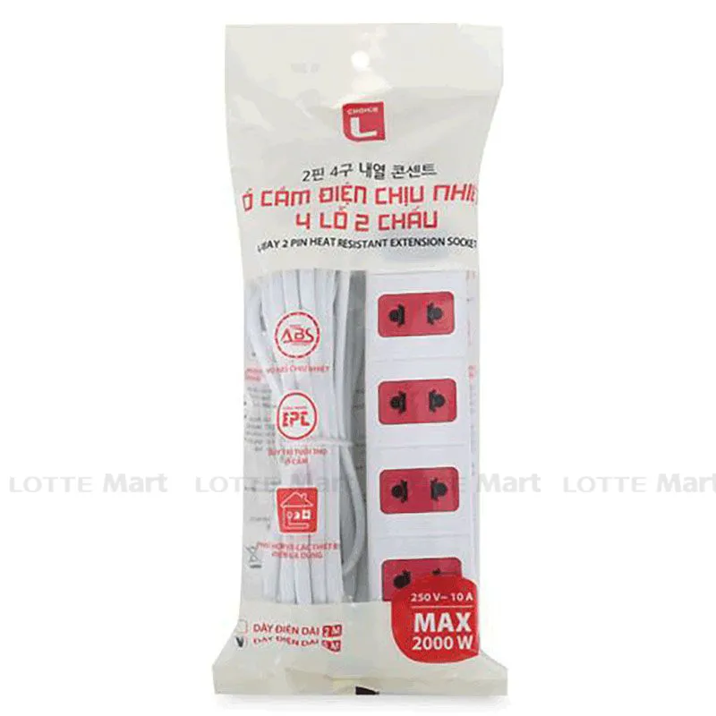 Ổ Cắm Điện Chịu Nhiệt Choice L 4 Lỗ 2 Chấu Dây Dài 5M
