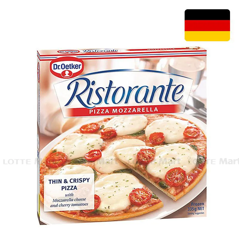 Pizza Ristorante Mozzarella Dr. Oetker 335g được phủ lớp trên cùng là 2 loại phô mai nổi tiếng Mozzarella & Edam từ Châu Âu, cà chua bi, húng quế kết hợp với nước sốt pizza đặc biệt được làm từ dầu oliu thượng hạng của Dr. Oetker tạo nên một chiếc bánh Pizza có đế mỏng, giòn, thơm ngon và bắt mắt với nhiều màu sắc từ các nguyên liệu.
