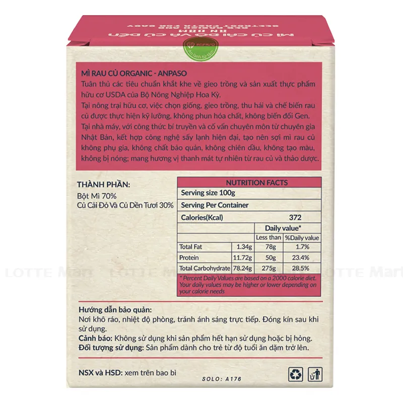 Mì Củ Cải Đỏ Và Củ Dền Ăn Dặm Anpaso Hộp 120g