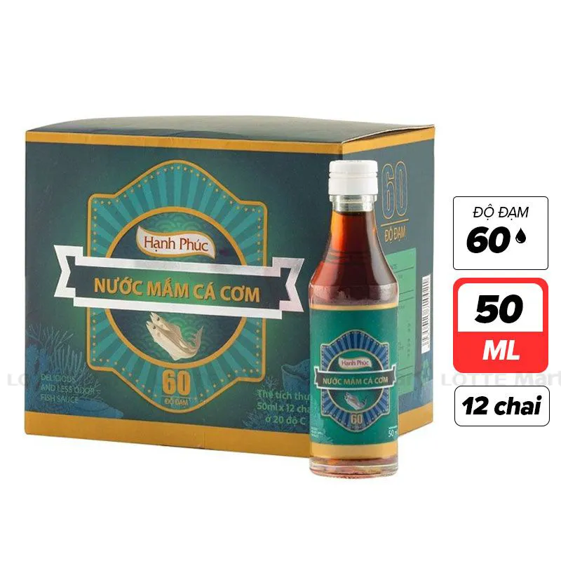Nước Mắm Cá Cơm Hạnh Phúc 60 Độ Đạm Hộp 12 Chai 50 ml