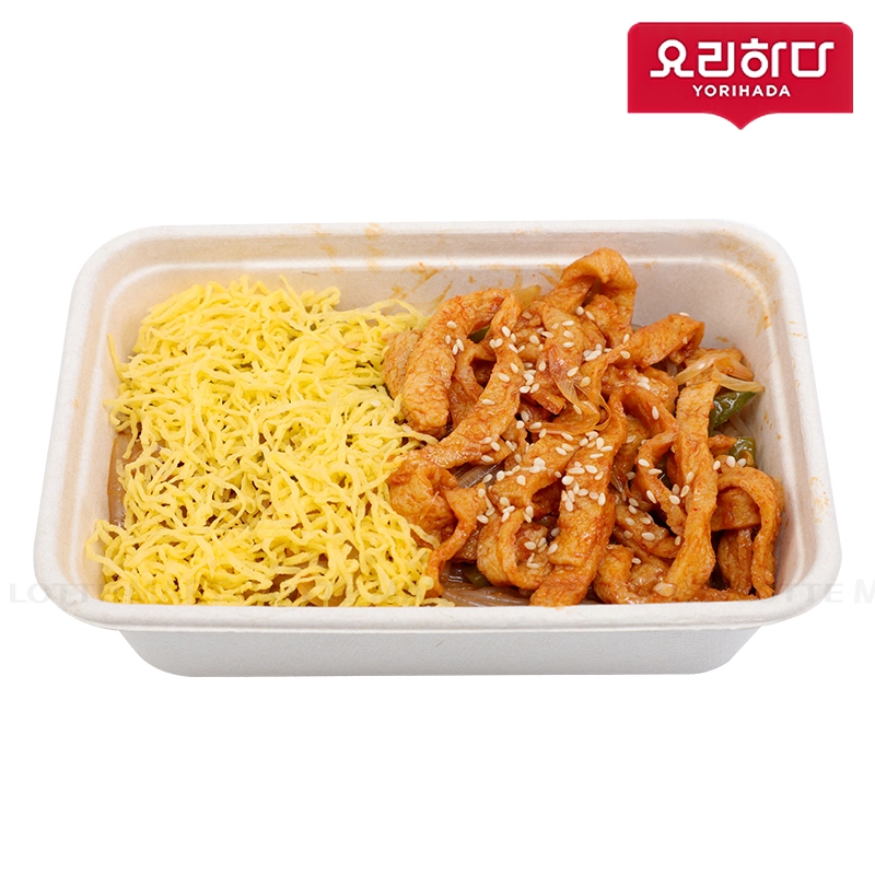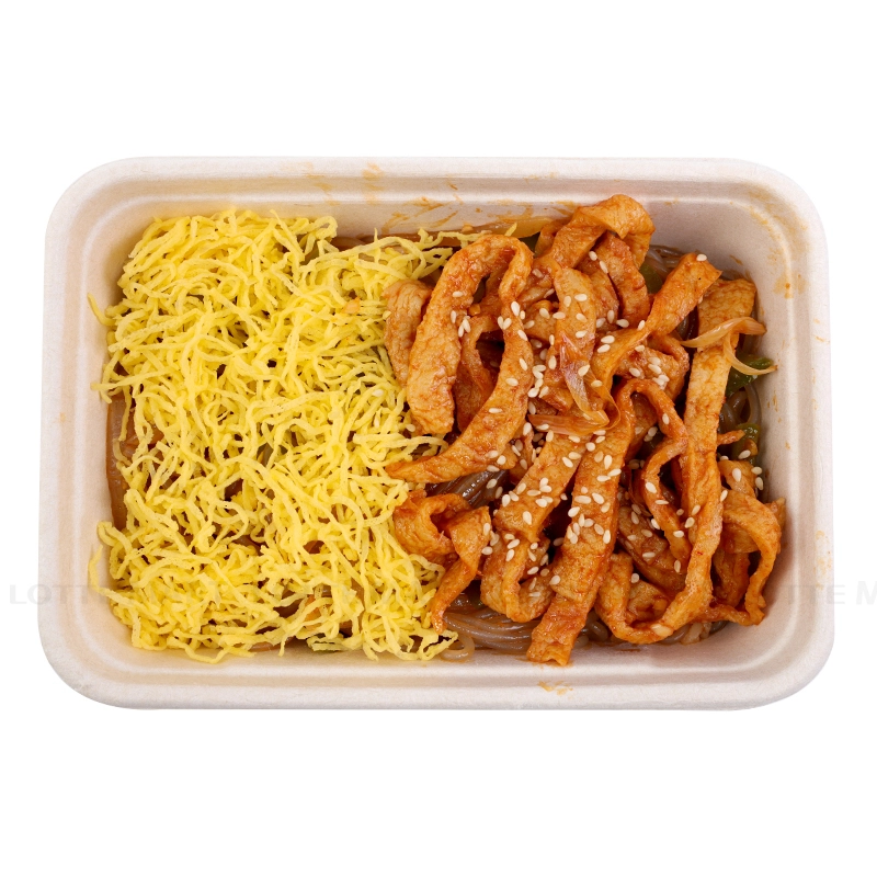 Thành phần: Miến, ớt chuông, hành tây, chả cá, sốt ớt, dầu mè, trứng.
