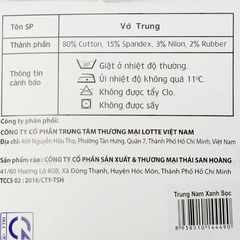 - Chất liệu: 80% Cotton, 15% spandex, 3% nilon, 2% rubber.