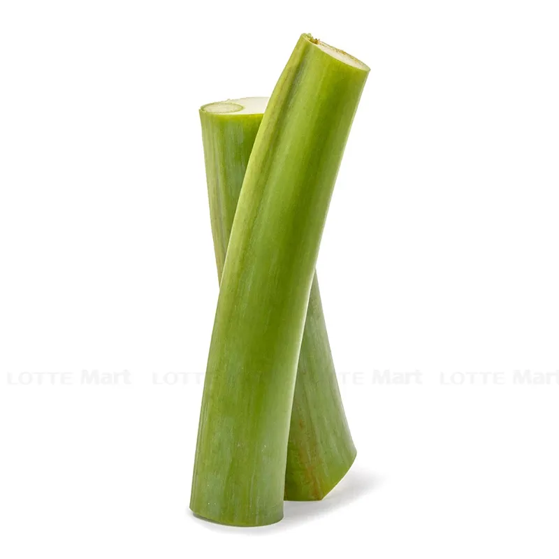 - Tước bỏ phần xơ bên ngoài dọc mùng. Sau khi loại bỏ lớp vỏ xanh dai bên ngoài, cắt dọc mùng theo miếng vừa ăn, rắc một thìa muối hạt và trộn đều, để khoảng 15 phút. Nên thái lát dọc thân dọc mùng vì nó rất xốp và nhiều nước, thái dọc giúp dọc mùng dễ ráo nước và dễ ngấm gia vị.