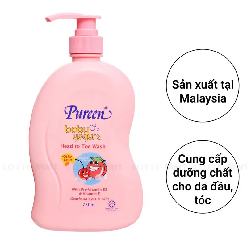 - Dầu Tắm Gội Pureen Tinh Chất Sữa Chua Anh Đào giúp da bé sẽ trở nên mịn màng và thơm mát hơn.