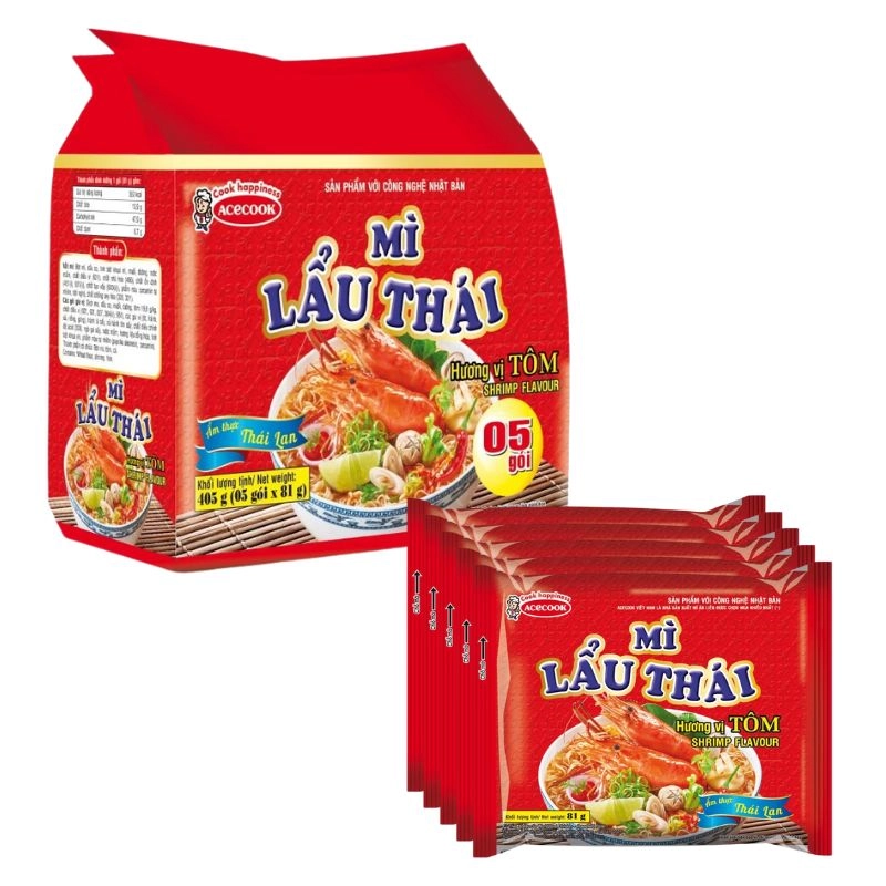 Lốc 5 Gói Mì Lẩu Thái Tôm Acecook 81G