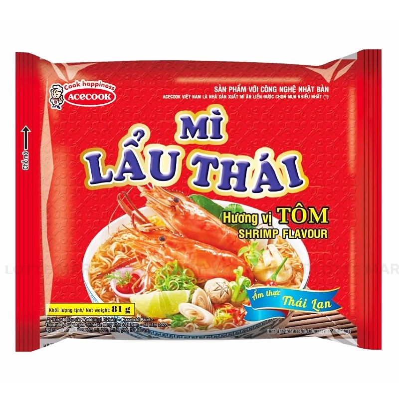Mì lẩu thái tôm Acecook không chỉ ngon mà còn bổ sung nhiều dưỡng chất cho cơ thể, cung cấp hàm lượng tinh bột, protein và nguồn năng lượng dồi dào cho cơ thể hoạt động suốt ngày dài. Mì đóng gói tiện lợi có thể dùng để ăn sáng hay mang theo khi đi du lịch hay dã ngoại.